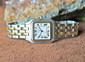 Preowned Cartier Panthere Ref. 83083442 Watch. This is technically a Large Gents watch. But with having a 29mm stainless steel case, this watch would be best suited for women or a gentleman small in stature, as watches have become much larger in the previous years. As a matter of fact, this size Panthere is difficult to find because this larger size is now preferred, so they sell quickly when they become available in the secondary market. The 18K yellow gold bezel, off-white dial, blued steel hands and black Roman numeral hour markers makes a stunning combination of a classy sport watch. Minute markers on the inner dial. Date display at the 3 o'clock position. Stainless steel & 18K yellow gold bracelet with hidden butterfly clasp. Sapphire crystal. Stainless steel case back. Quartz: Battery powered movement.